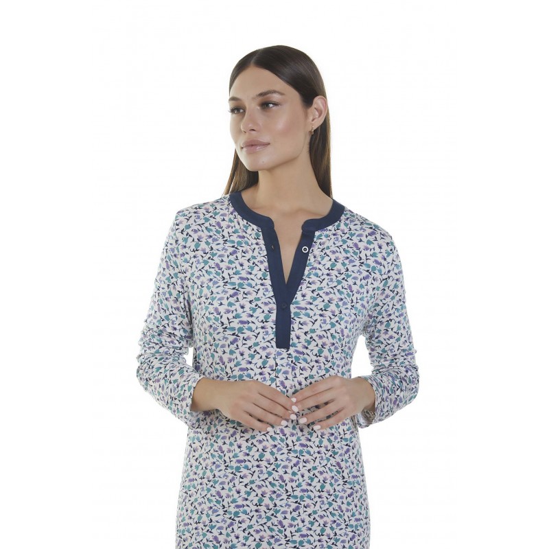Long-sleeved nightgown with colorful and fresh print. A comfortable and suitable garment for the low temperatures of the winter time.