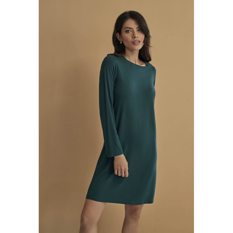 Long sleeve nightgown. A basic and comfortable design with a minimalist aesthetic to warmly enjoy the interior of the home.