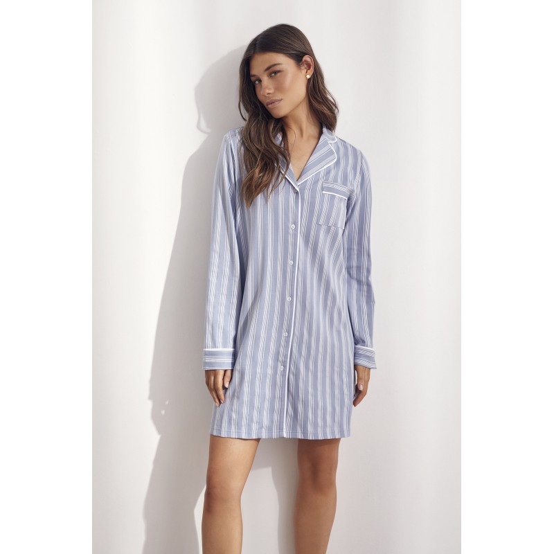 Long sleeved nightgown. With a striped print and soft fabric, ideal for autumn and winter.
