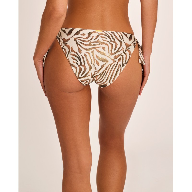 Low-rise bikini bottoms with side ties. Featuring an organic animal print that conveys instinct, strength, and freedom, celebrating a confident and powerful femininity. Part of the Utopia collection, where the impossible becomes reality.