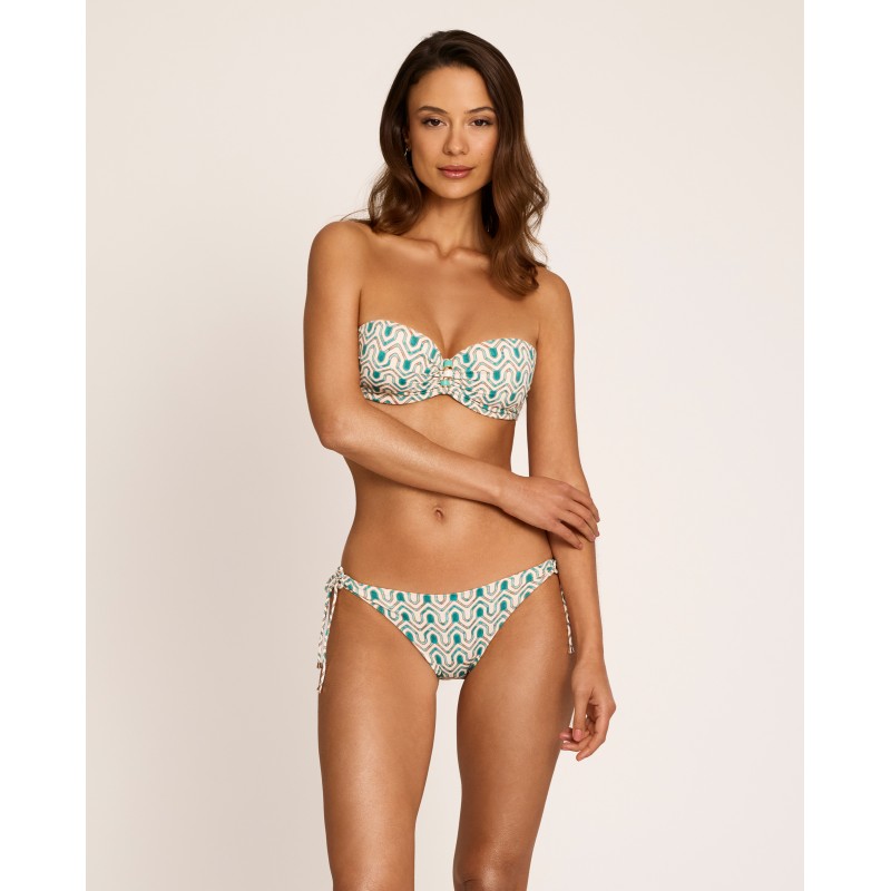 Low-rise bikini bottoms with side ties. Featuring a geometric print that adds dynamism and a summery feel. A contemporary and sophisticated option for this season. Made with recycled materials.