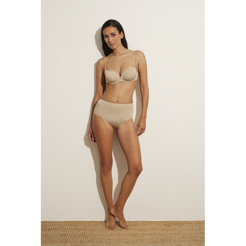High cut menstrual panty. This garment designed to be worn during the menstrual period is made with absorbent materials that help prevent leaks. It is comfortable, easy to wash and reusable, making it a sustainable and economical option.