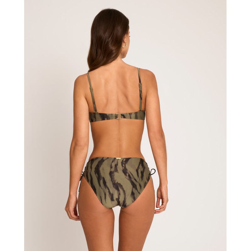 Underwire bikini top with foam cups. Provides perfect support and maximum comfort. Its wild-inspired design connects us with our natural instincts and the inner strength of a confident and sensual femininity. This piece is made from recycled raw materials.