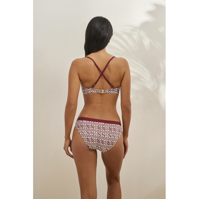 Bikini top with underwire and foam cup. A classic design with straps that provides perfect support and maximum comfort. With a beautiful ethnic print, ideal for creating a discreet and elegant beach or pool look.