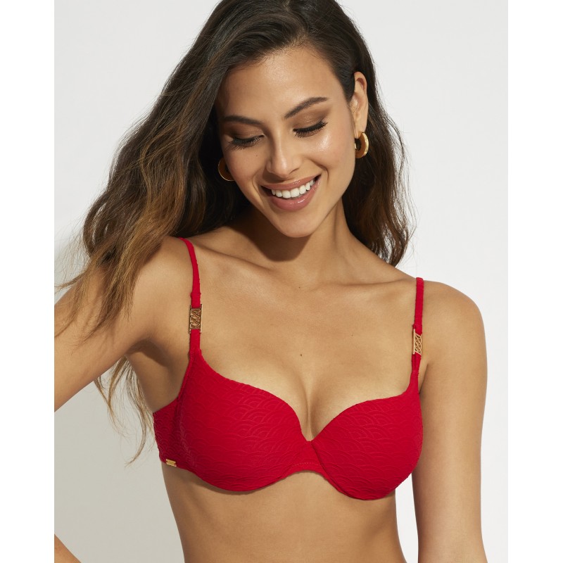 Bikini top with underwire and foam cup. With straps that provide perfect support and maximum comfort. Its simple design and pure color give it a sophisticated and seductive touch to highlight your figure and feel comfortable and confident.