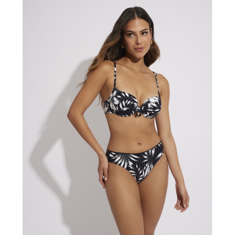 Bikini top with underwire and foam cup. With straps that provide perfect support and maximum comfort. This typically tropical floral design is inspired by the spirit of Hawaii's paradise beaches. It is perfect to wear during the summer or on vacation in sunny destinations.