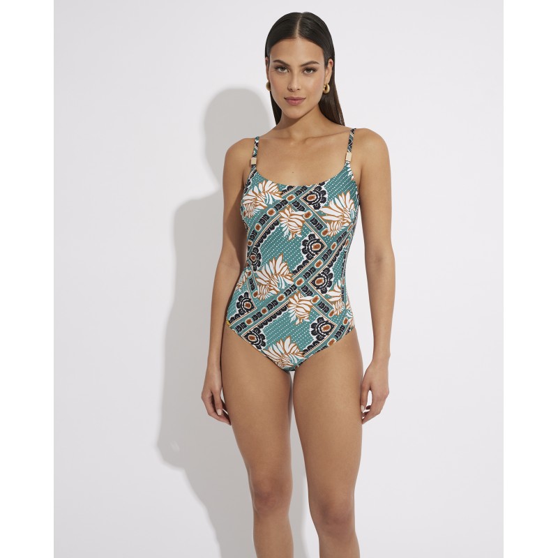 Bikini top with underwire and foam cup. A classic design with straps that provides perfect support and maximum comfort. With a design that combines the femininity of flowers and the structure of geometric shapes, creating a visually attractive balance. This contrast ensures that it is a striking piece and stands out from other more conventional designs.
