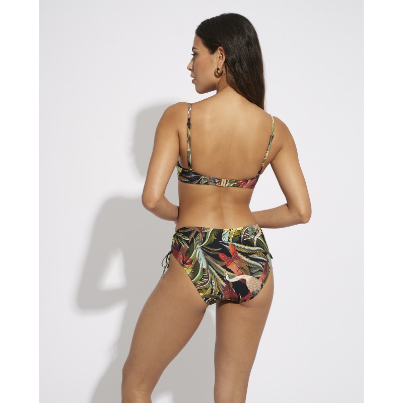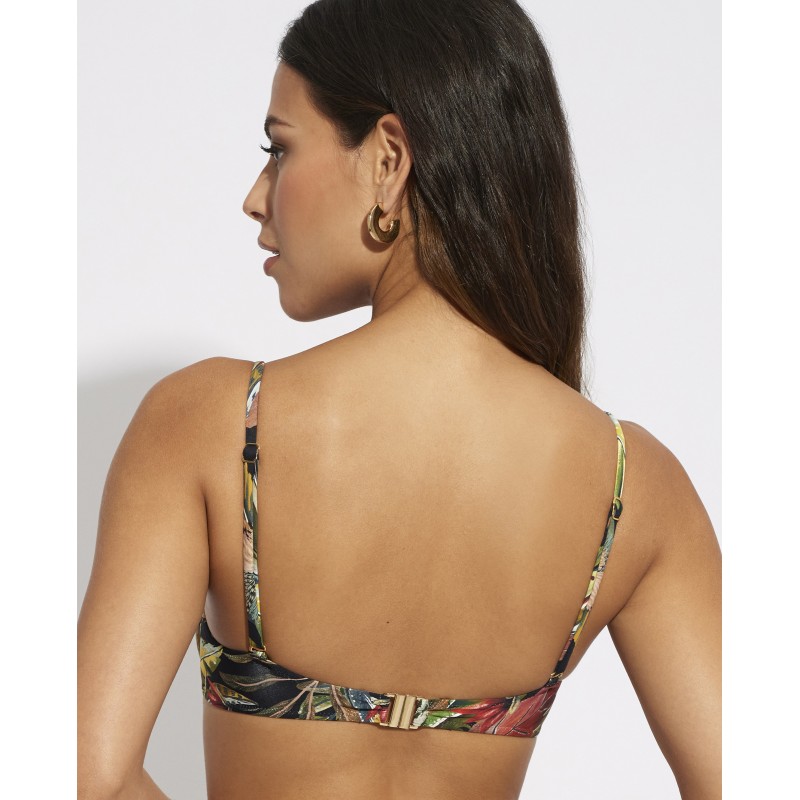 Bikini top with underwire and foam cup. A classic design with straps that provides perfect support and maximum comfort. This spectacular design with vibrant tones inspired by wild flora and fauna reflects the exuberance and vitality of tropical wild nature.