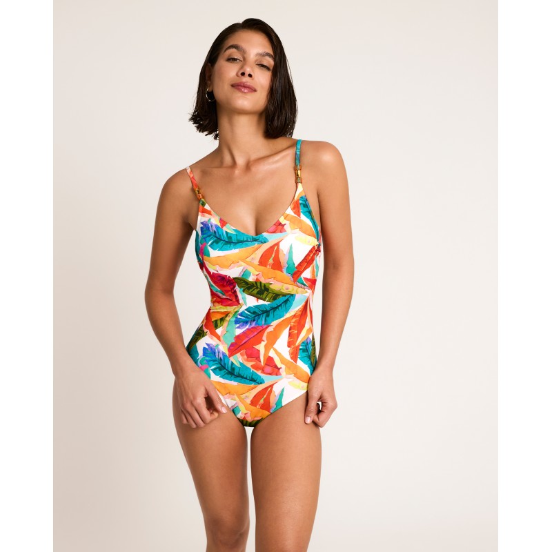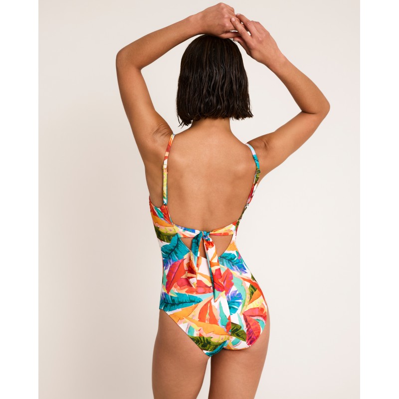 Shaping swimsuit with foam cups and no underwire. With multi-position straps. Inspired by lush nature, this tropical print is perfect for sunbathing and moments by the water.