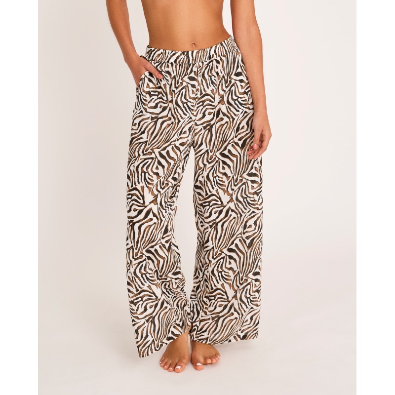 Palazzo pants. Featuring an organic animal print that conveys instinct, strength, and freedom, celebrating a confident and powerful femininity. Part of the Utopia collection, where the impossible becomes reality. Complete your summer outfit with this piece.