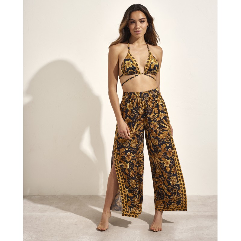 Palazzo pants with side slits. Dare to stand out with a unique design that combines sophistication and modernity thanks to its innovative print and impeccable cut. Ideal to complete your summer look.