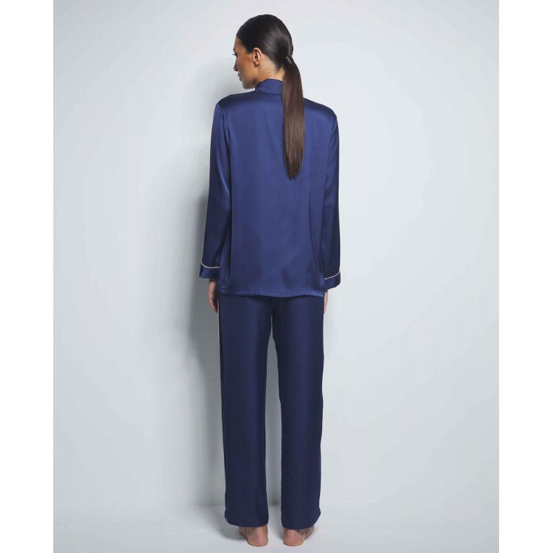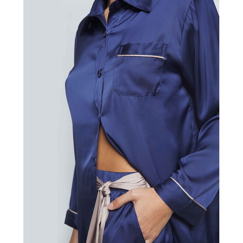 Complete shirt style pajamas. Composed of front closure top and long pants. Designed to enhance the femininity and sensuality of women, offering an attractive and seductive look without sacrificing comfort.
