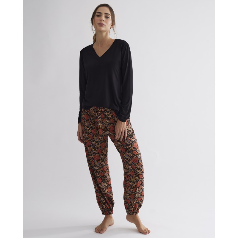 Complete pajamas with long pants and long-sleeved top. With a very feminine floral print that guarantees a comfortable and pleasant sleeping experience. Ideal for this winter.