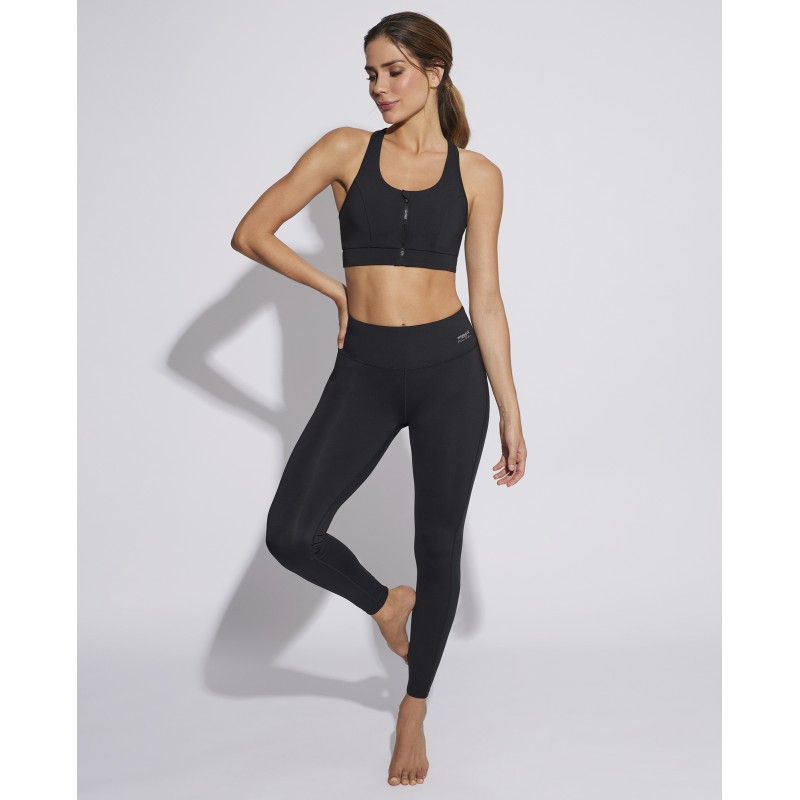 Sports top with covered zipper to avoid contact with the skin from the Selmark Tech collection by Pilar Rubio. It has control tulle, inner rubber for maximum support, removable cups and reflective transfer. Ideal for keeping the chest lifted and firm, guaranteeing freedom of movement during physical activity.