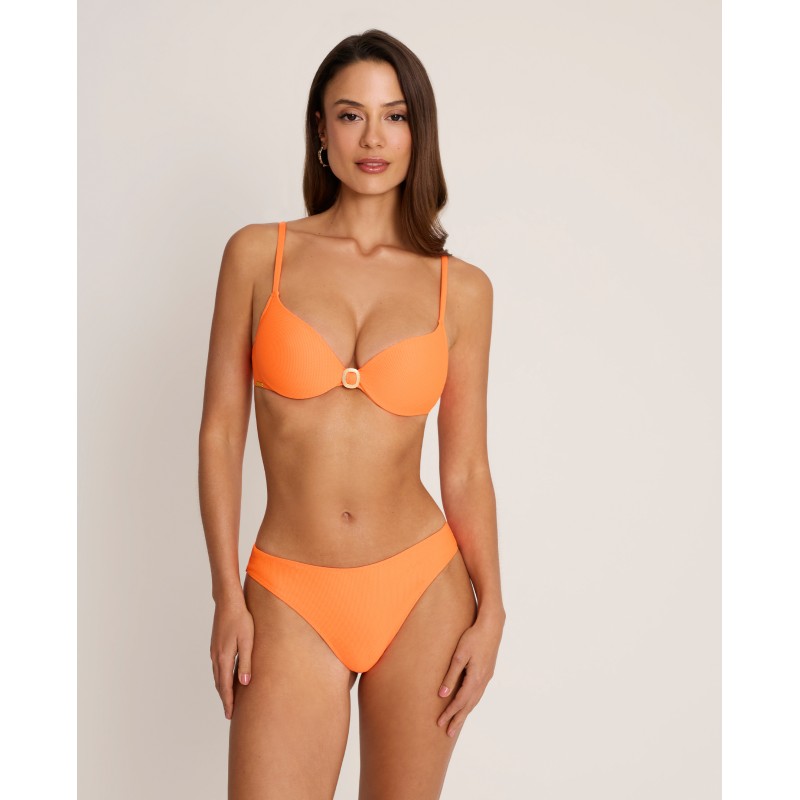 Push-up bikini top with multi-position straps. Visibly increases your bust by up to one cup size. Its uniform tone and timeless style make it ideal for showing off this season.