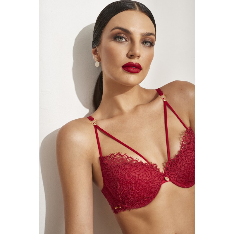 Push-up bra that firms the chest and increases up to one size. It combines a beautiful geometric and floral lace with a subtle golden embellishment. This design inspired by fun and freedom is ideal to enjoy our wildest side.