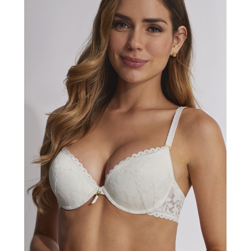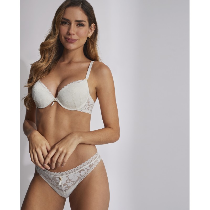 Push up bra. Firms the chest and increases up to one size. This garment is a promise of special moments, a touch of mystery and seduction that transforms the power of femininity in its most refined and captivating form.