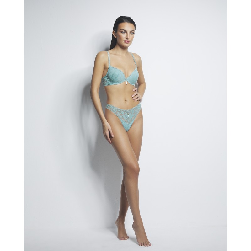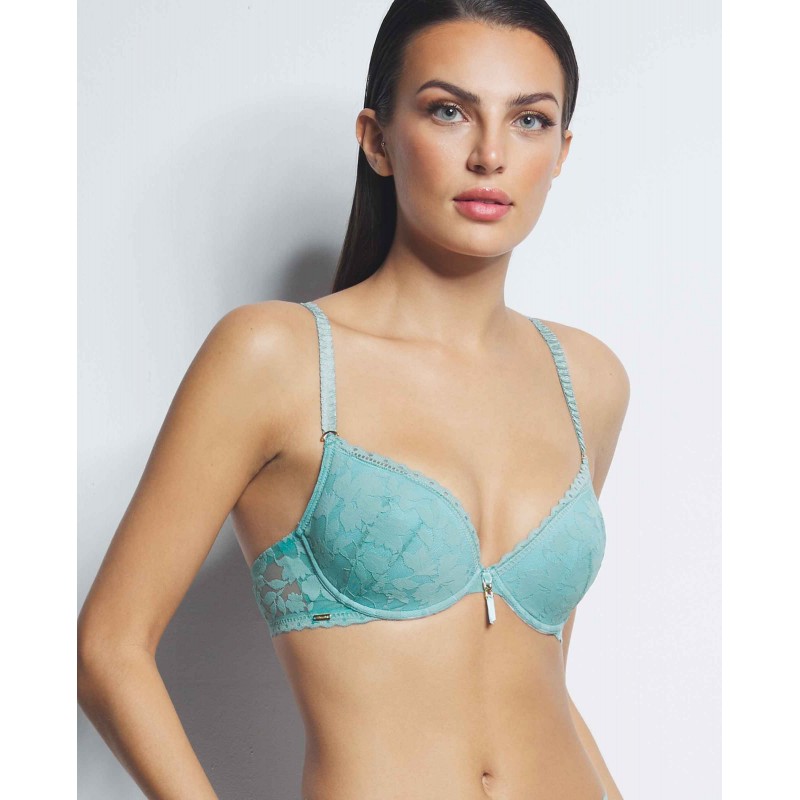 Push up bra. Firms the chest and increases up to one size. This garment is a promise of special moments, a touch of mystery and seduction that transforms the power of femininity in its most refined and captivating form.