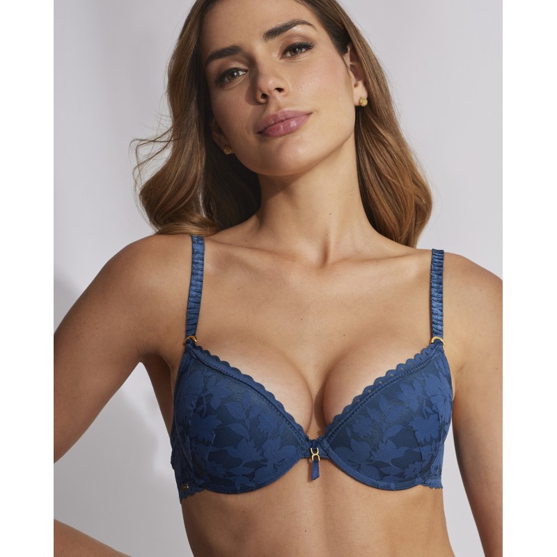Push up bra. Firms the chest and increases up to one size. This garment is a promise of special moments, a touch of mystery and seduction that transforms the power of femininity in its most refined and captivating form.