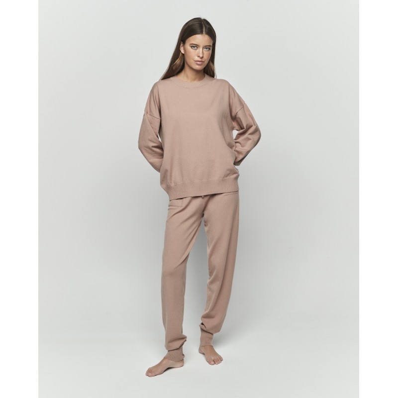 Completo in maglia composto da maglia a maniche lunghe con scollo rotondo e pantaloni lunghi con polsini e tasche. Un capo versatile che ti accompagnerà dalla comodità di casa alle tue attività all'aperto.