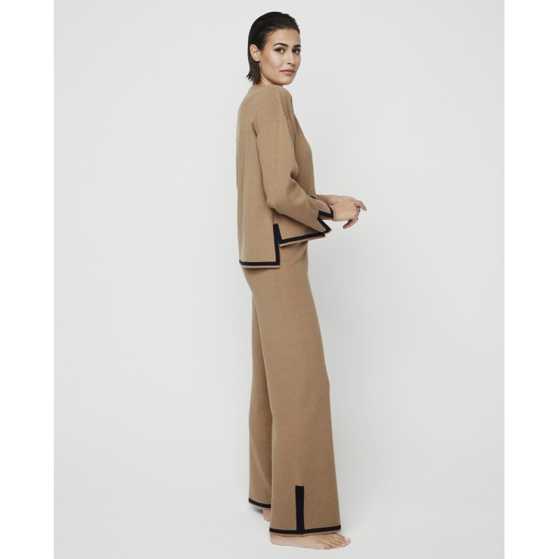 Knitted set featuring a long-sleeved, round-neck top and long pants. A practical set that's perfect for both at-home and outings.