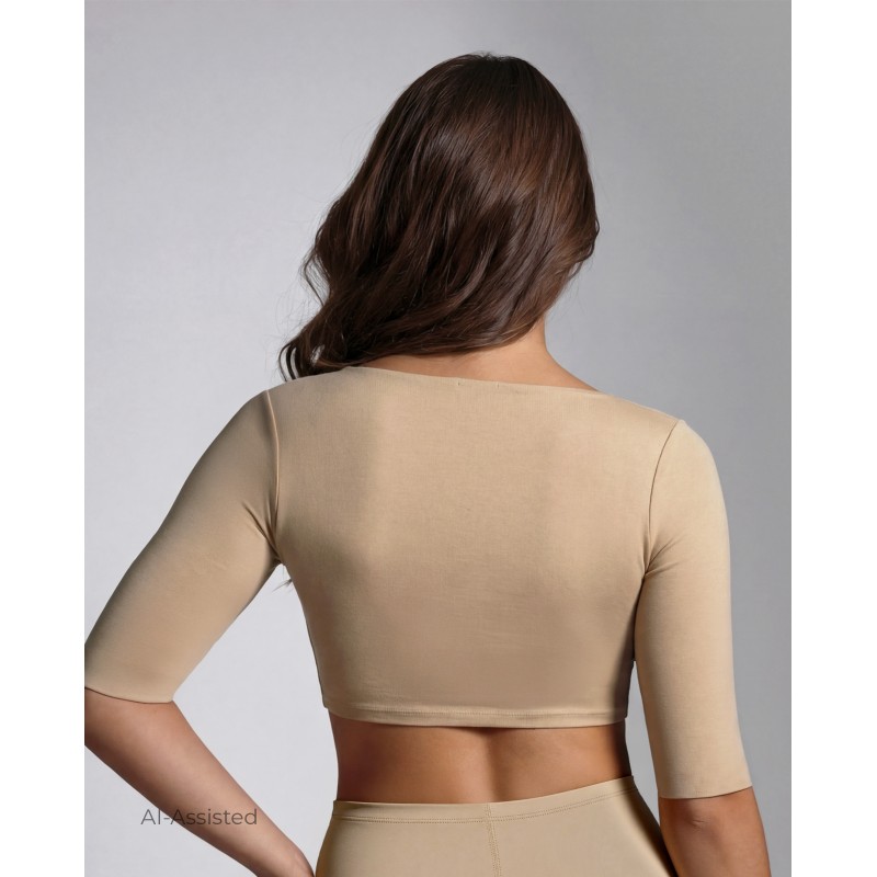 Seamless arm shapper with front closure. A functional garment with a simple aesthetic.