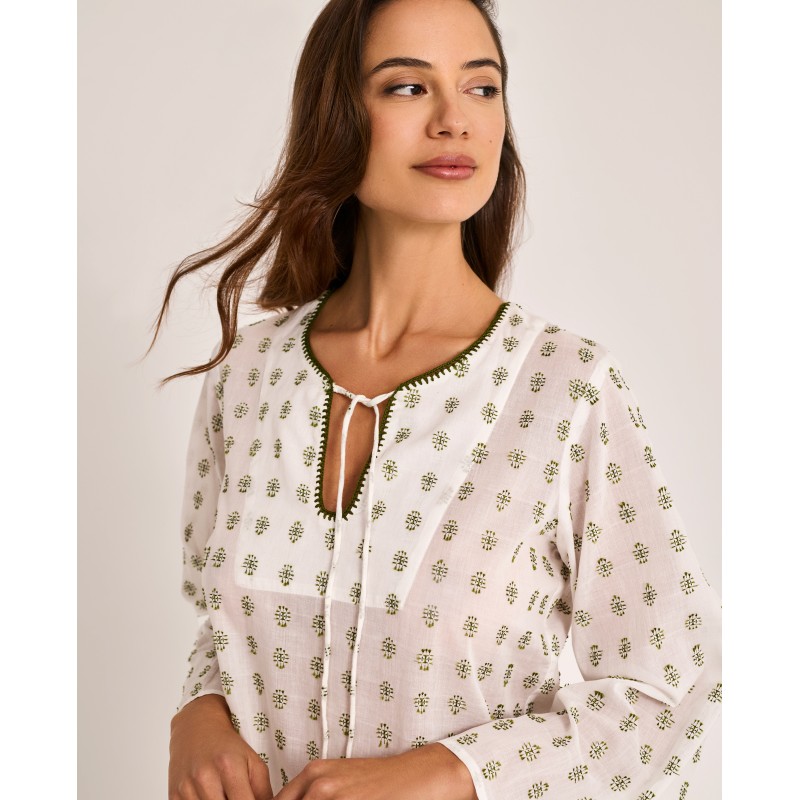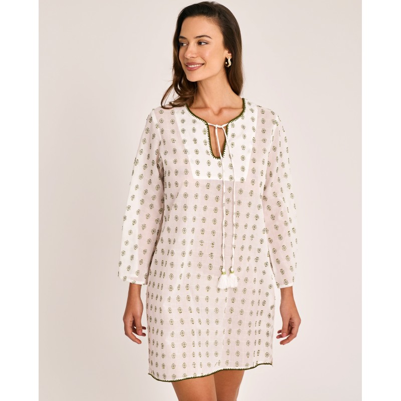 Short dress with sleeves and embroidery at the neckline. A fresh and feminine design, ideal for this season.