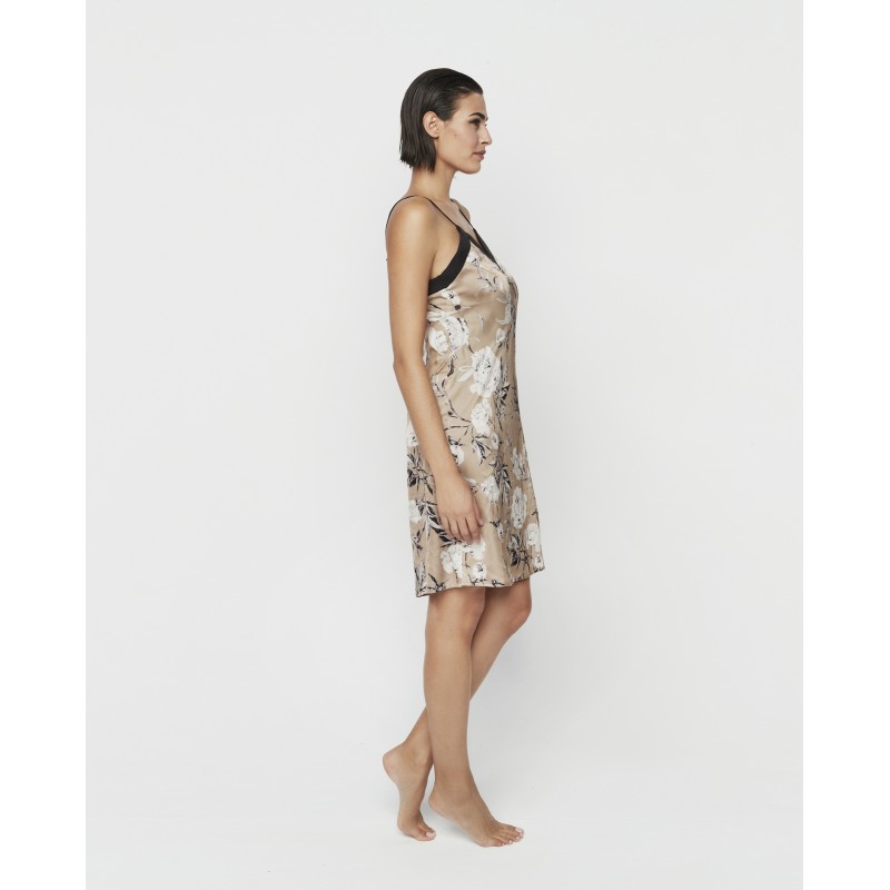 Short nightgown with adjustable straps. Floral print. An elegant and sophisticated garment. The Malitzia collection, to which it belongs, represents a perfect dance between the delicate and the daring.