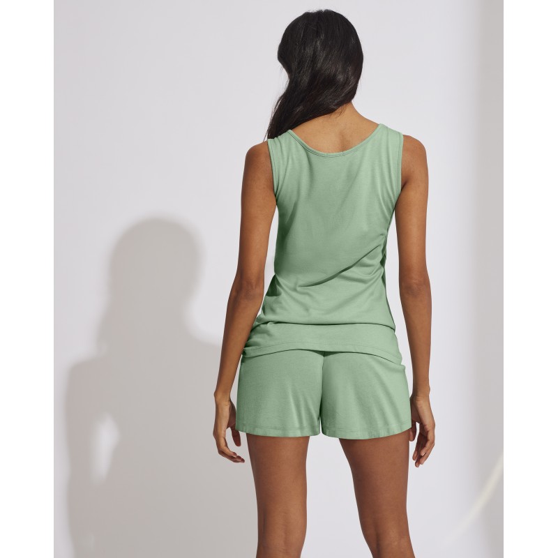 Short pajamas consisting of a sleeveless shirt with lace and simple shorts. Its classic design gives it a romantic and bohemian style at the same time. This garment combines sensuality, freshness and elegance, ideal for free and authentic women.