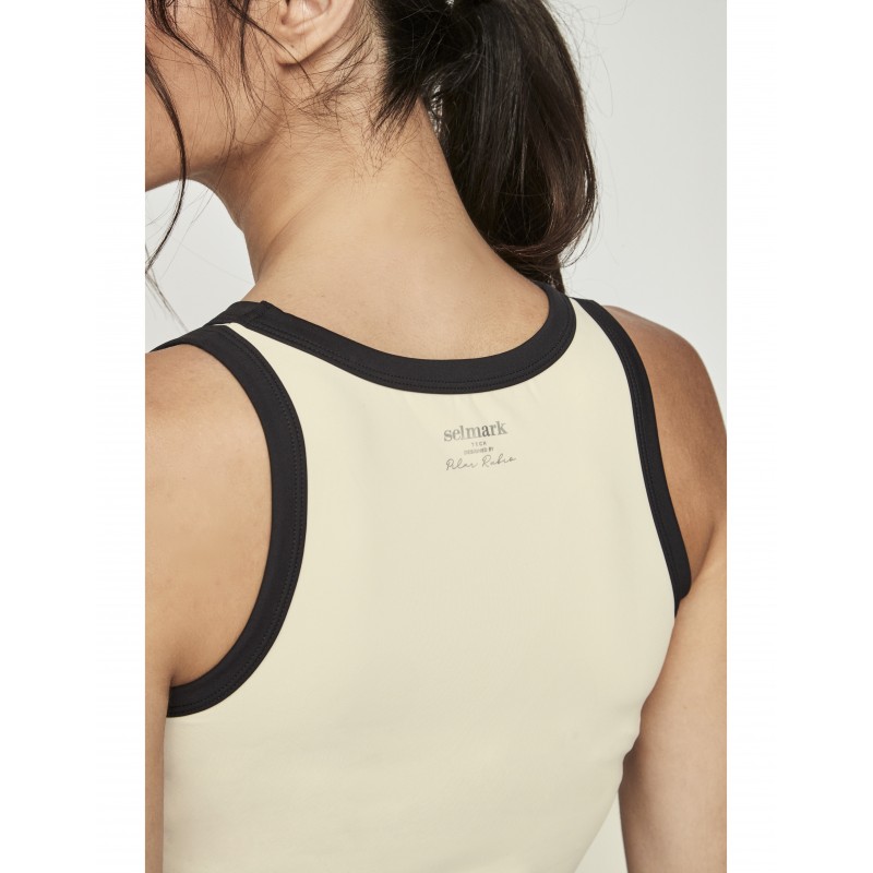 This sports t-shirt is part of the new Selmark Tech collection by Pilar Rubio. Sleeveless, round neck and hip-length. Very comfortable and perfect to combine with leggings or a matching skirt-pants for a perfect total look.