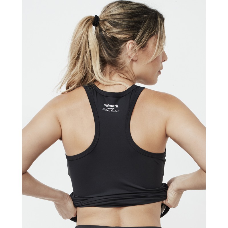 This T-shirt is part of the new Selmark Tech collection by Pilar Rubio. It's a hip-length top, sleeveless, and features a racerback. Ideal for comfort and freedom of movement during physical activity.