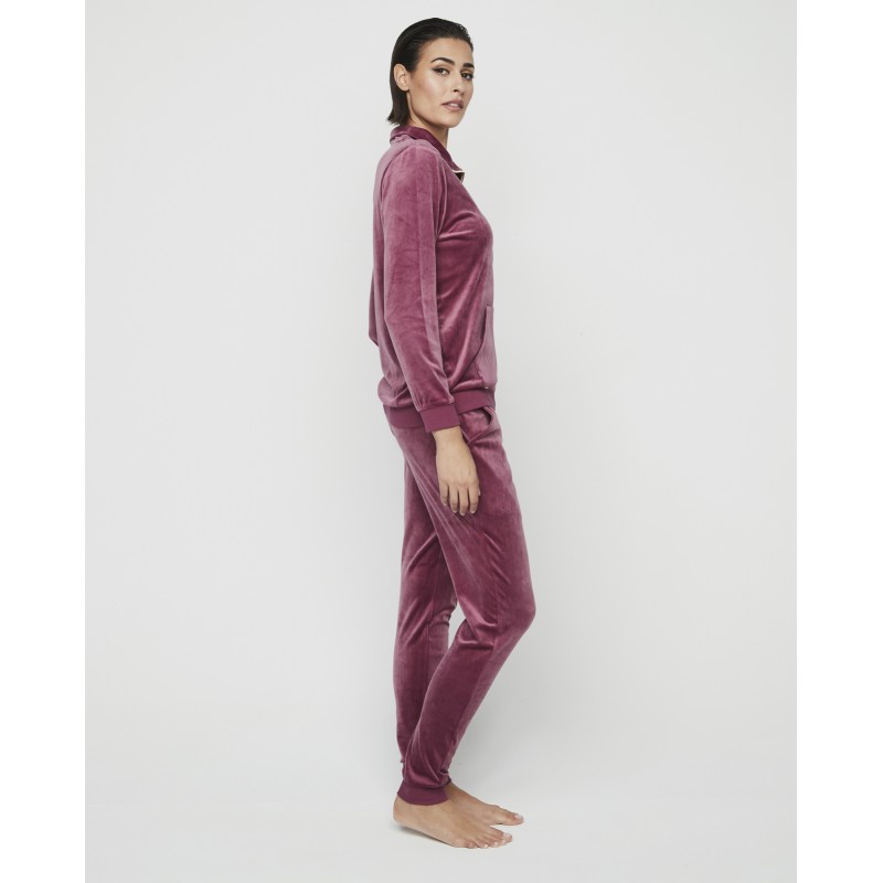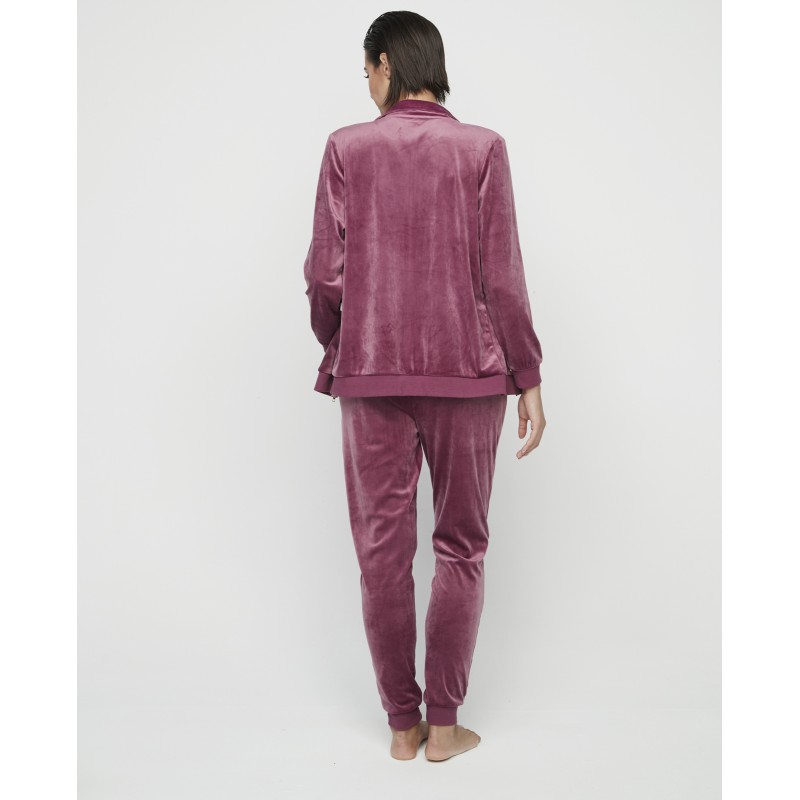 A sporty set featuring long pants and a zip-up jacket with pockets. This outfit will keep you comfortable and stylish throughout your routine, both indoors and outdoors.