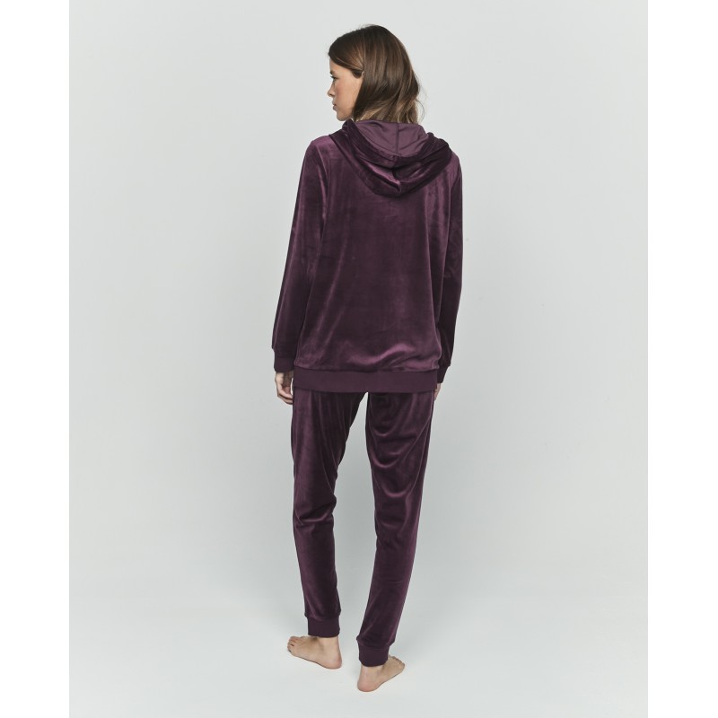 A sporty set featuring long pants and a zip-up jacket with a hood and pockets. This versatile set will keep you comfortable and stylish throughout your routine, both indoors and outdoors.