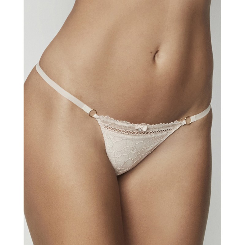 Floral lace string thong panties. Its elastic band does not mark. A delicate and sophisticated garment. The Agatha collection, to which it belongs, embodies the maturity and splendor of the brand, offering pieces that not only adorn, but transform. A collection with charm and charisma.