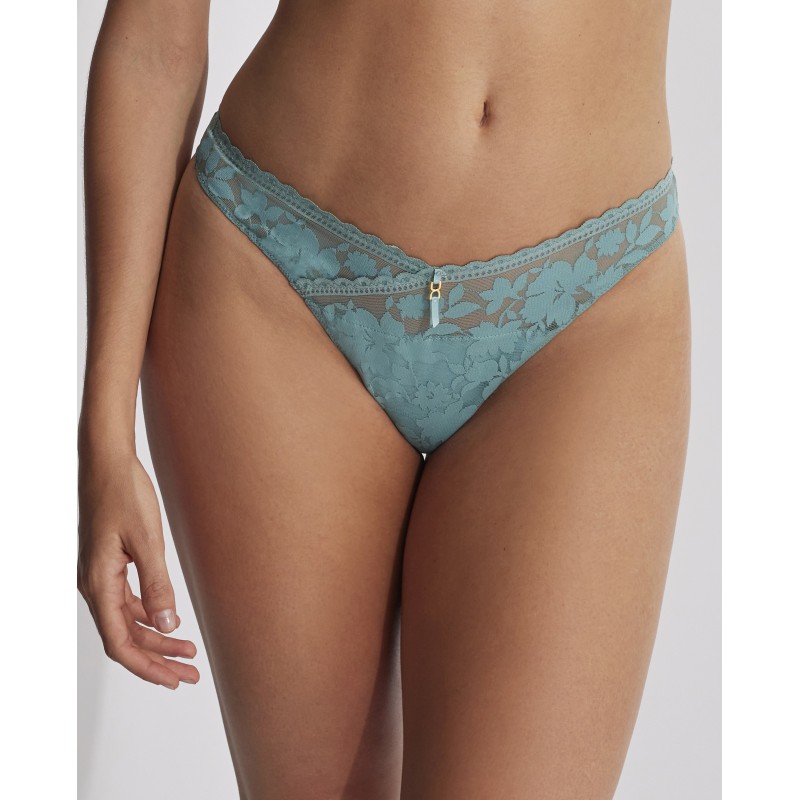 Thong briefs with delicate lace details. This garment is a promise of special moments, a touch of mystery and seduction that transforms the power of femininity in its most refined and captivating form.