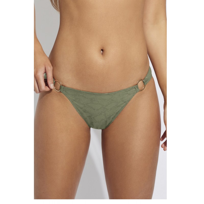 Bikini bottom with adjustable knots. With a spectacular recycled fabric, this collection has a very special shine that will capture all eyes this season.