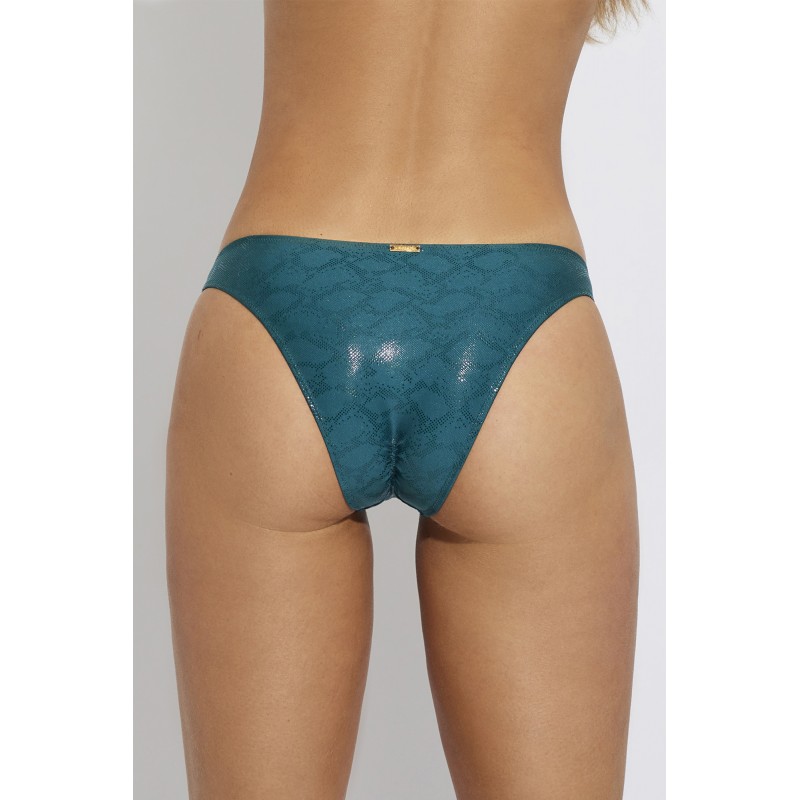 Bikini bottom with adjustable knots. With a spectacular recycled fabric, this collection has a very special shine that will capture all eyes this season.