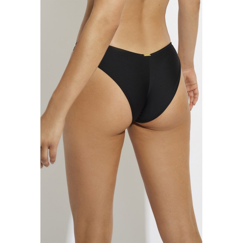 Bikini bottom with adjustable knots. In black and with a flirty and feminine floral embroidery that stands out on its own, it will make you feel irresistible this season.