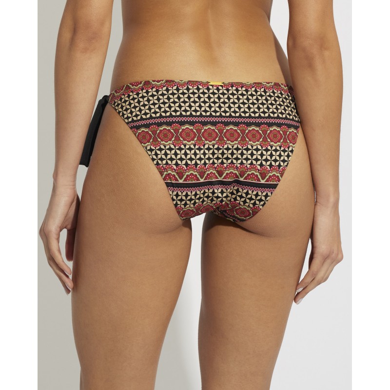 Low-rise bikini bottoms with knots for adjustment. With an ethnic style geometric pattern inspired by tribal designs and unique details that give it an authentic and original touch.