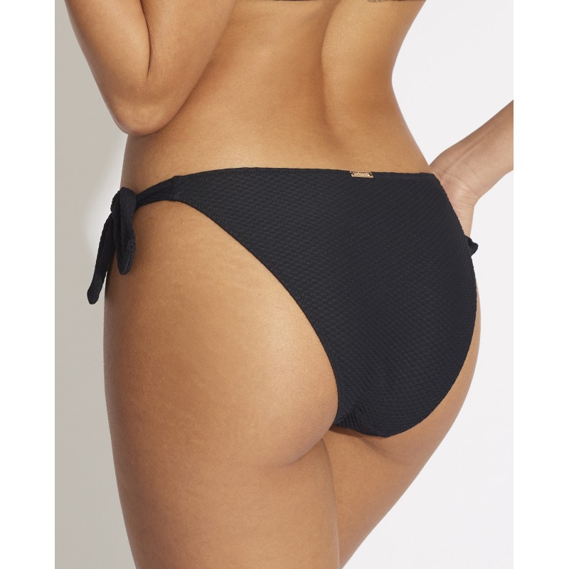 Low-rise bikini bottoms with knots for adjustment. This design is simple and timeless, which makes it very versatile and easy to combine with different bikini tops and never goes out of style. At the same time, it provides a comfortable and secure fit.