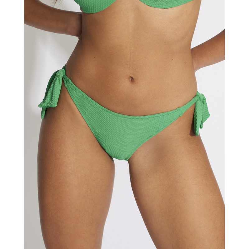 Low-rise bikini bottoms with knots for adjustment. This design is simple and timeless, which makes it very versatile and easy to combine with different bikini tops and never goes out of style. At the same time, it provides a comfortable and secure fit.