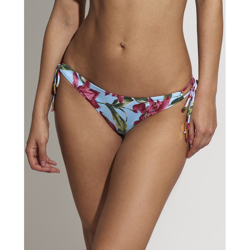 Low-rise bikini bottoms with adjustable knots. With a tropical print that evokes the beauty of a paradise island. Its color and freshness transmit the joy and energy of the most anticipated season of the year.