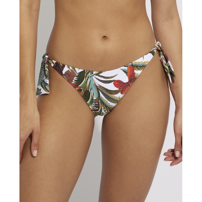 Low-rise bikini bottoms with adjustable knots. This spectacular design with vibrant tones inspired by wild flora and fauna reflects the exuberance and vitality of tropical wild nature.