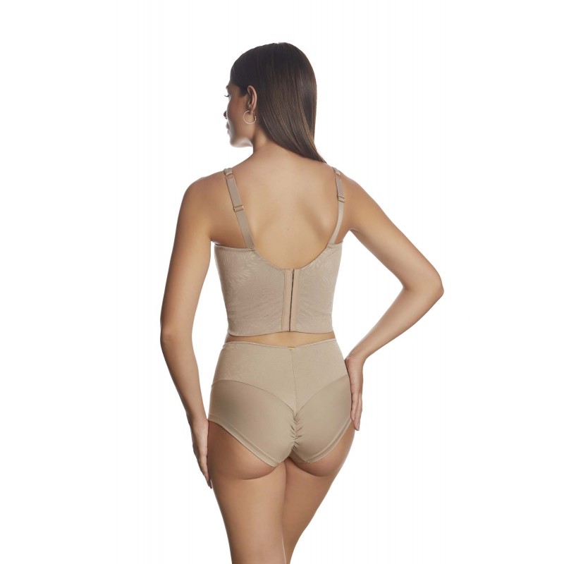 Reducing effect top. Its rigid base is designed to prevent chest movement. Includes clips to attach to the high waist belt with which it is made together.