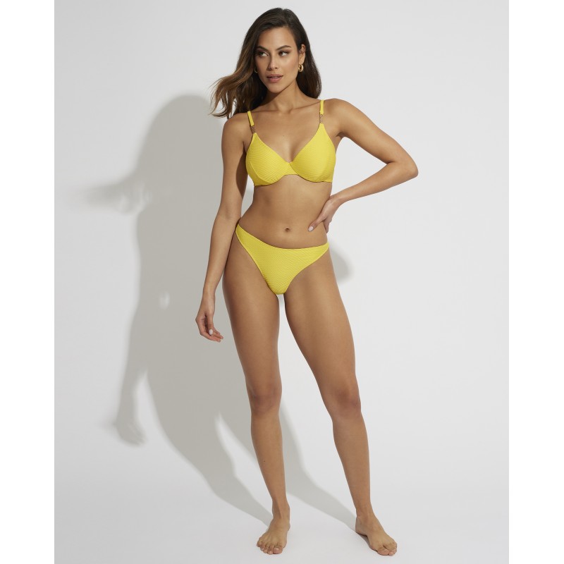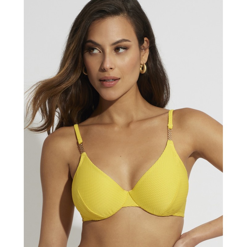 Bikini top with underwire and without foam. It provides perfect support and maximum comfort. This design is simple and timeless, which makes it very versatile and easy to combine with different bikini panties.