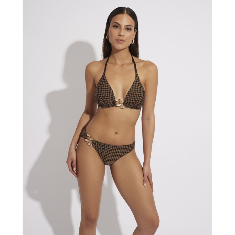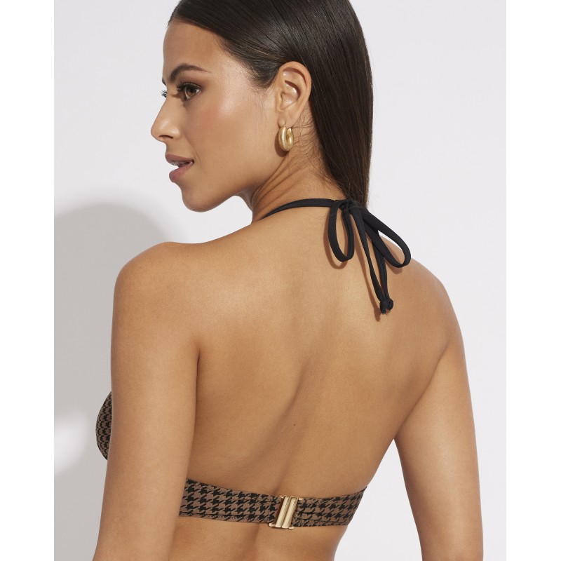 Bikini top with triangle neckline. With removable cup. Its elegant and retro design will give you a touch of sophistication and glamor that will highlight your unique style this summer.