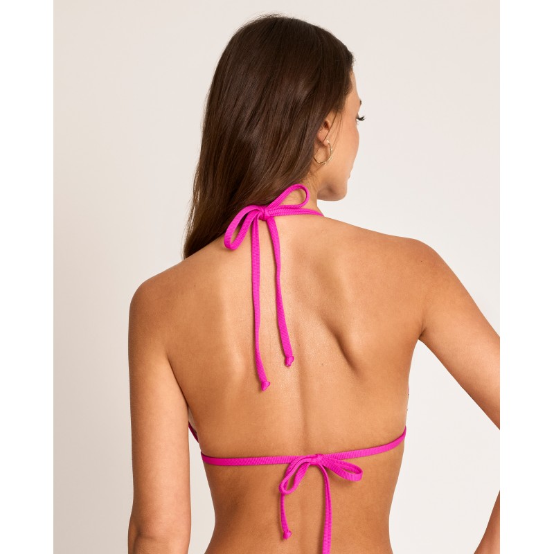 Bikini top with a triangle neckline. Features foam padding and multi-position straps. Its uniform color and timeless style make it ideal for showing off this season.