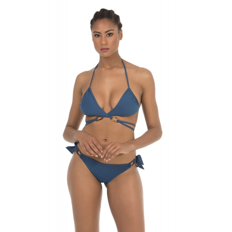 Triangle multiposition bikini top. With removable cup and five possible positions. Petrol blue.