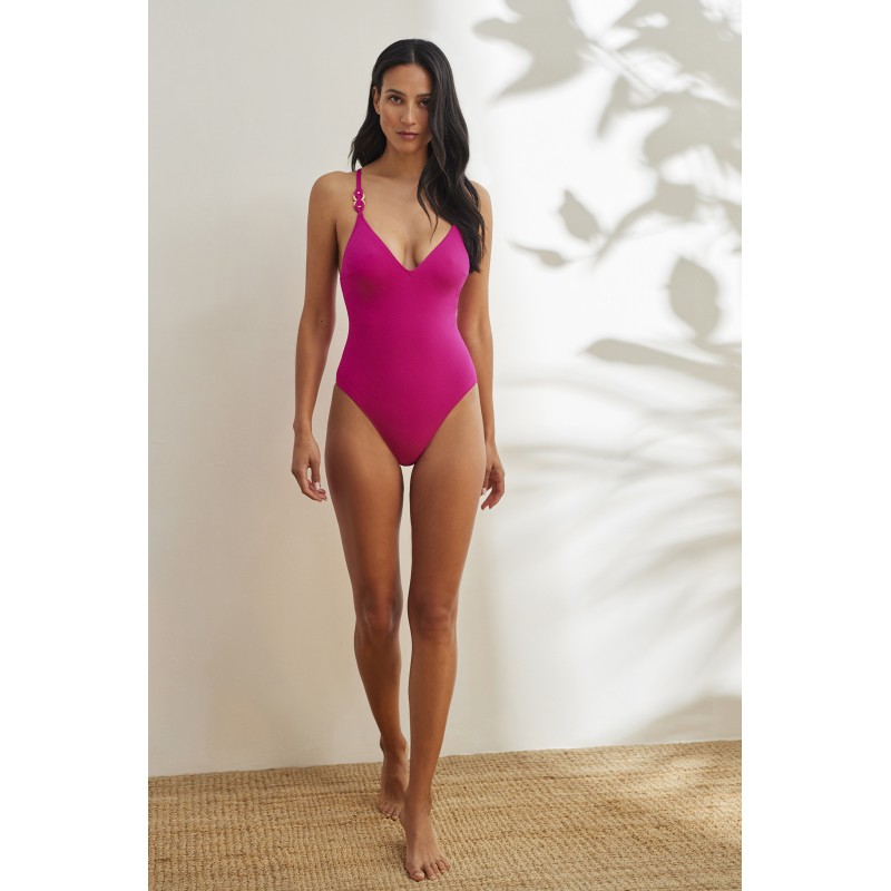 Triangular low-cut swimsuit without inner cup and without underwire. With low back and crossed straps. A design that guarantees maximum comfort and freedom of movement. Ideal for this summer.