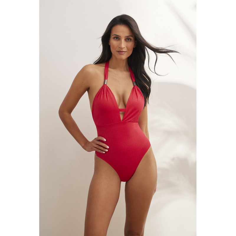 Triangular low-cut swimsuit without inner cup and without underwire. With a detail that adds elegance to this piece and makes it an ideal alternative among your swimwear.